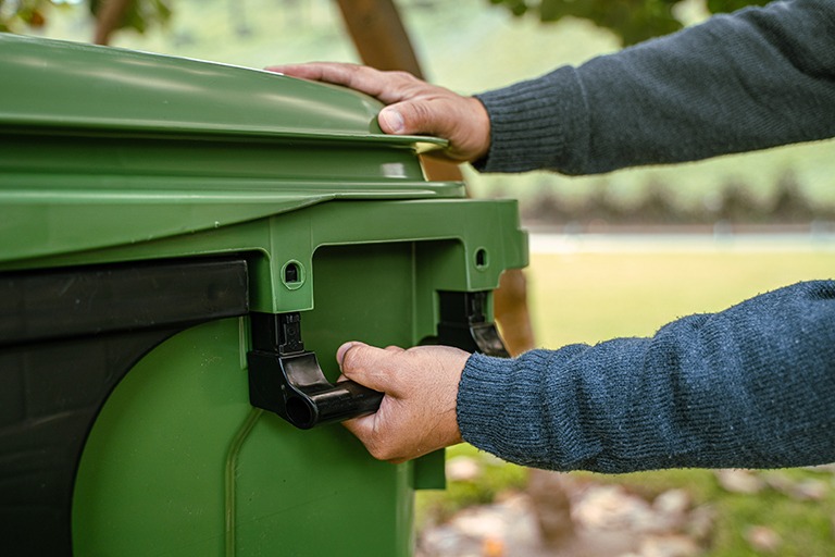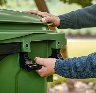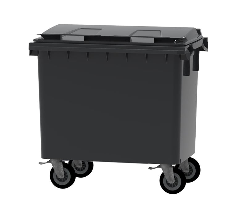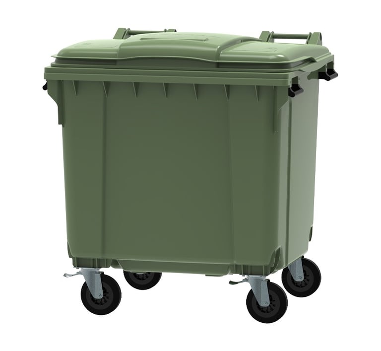 Inyectados en polietileno de alta densidad, 4 ruedas. Opciones de tapas especiales para recolección de reciclables.